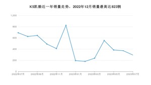 2023年7月,K5凯酷销量为294辆,同比下降57.45%,环比下降20.75%。2022年07月-2023年07月份,K5凯酷销量为5892辆,同比下降49.74%。