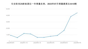 2023年7月,长安欧尚Z6新能源销量为4410辆,环比增长15.81%。2022年07月-2023年07月份,长安欧尚Z6新能源销量为16521辆,