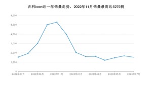 2023年7月,吉利icon销量为1527辆,同比下降1.17%,环比下降8.73%。2022年07月-2023年07月份,吉利icon销量为31871辆,同比增长138.34%。