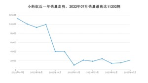 2023年7月,小蚂蚁销量为2110辆,同比下降81.16%,环比增长36.92%。2022年07月-2023年07月份,小蚂蚁销量为61010辆,同比下降40.93%。
