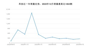 2023年7月,昂扬销量为254辆,环比增长14.93%。2022年07月-2023年07月份,昂扬销量为5545辆,