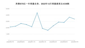 2023年7月,奔腾B70销量为3356辆,同比增长58.6%,环比下降8.46%。2022年07月-2023年07月份,奔腾B70销量为34531辆,同比增长72.92%。