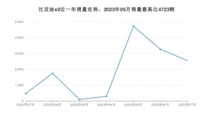 2023年7月,比亚迪e2销量为2550辆,同比增长446.04%,环比下降21.88%。2022年07月-2023年07月份,比亚迪e2销量为13129辆,同比下降64.86%。