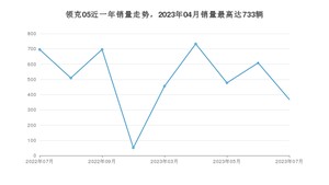 2023年7月,领克05销量为368辆,同比下降47.13%,环比下降39.47%。2022年07月-2023年07月份,领克05销量为4593辆,同比下降71.11%。