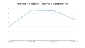 2023年7月,奔腾M9销量为46辆,环比下降30.3%。2022年07月-2023年07月份,奔腾M9销量为212辆,