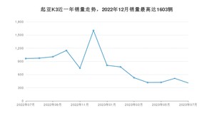 2023年7月,起亚K3销量为409辆,同比下降57.62%,环比下降20.27%。2022年07月-2023年07月份,起亚K3销量为10314辆,同比下降47.2%。