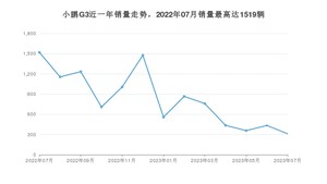 2023年7月,小鹏G3销量为311辆,同比下降79.53%,环比下降28.34%。2022年07月-2023年07月份,小鹏G3销量为10819辆,同比下降64.22%。