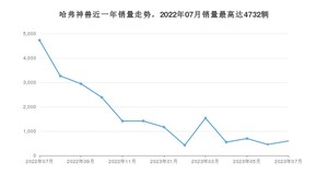 2023年7月,哈弗神兽销量为600辆,同比下降87.32%,环比增长31.87%。2022年07月-2023年07月份,哈弗神兽销量为21590辆,同比下降49.66%。