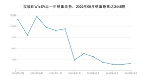 2023年7月,宝骏KiWi EV销量为333辆,同比下降85.57%,环比增长21.53%。2022年07月-2023年07月份,宝骏KiWi EV销量为15171辆,同比下降20.4%。