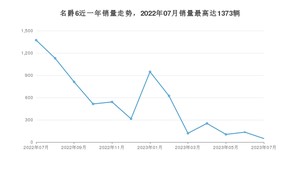 2023年7月,名爵6销量为48辆,同比下降96.5%,环比下降64.18%。2022年07月-2023年07月份,名爵6销量为6909辆,同比下降83.02%。