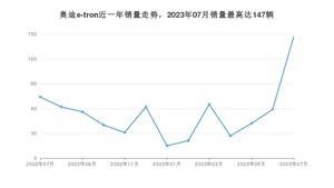 2023年7月,奥迪e-tron销量为147辆,同比增长98.65%,环比增长149.15%。2022年07月-2023年07月份,奥迪e-tron销量为701辆,同比下降59.57%。