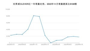 2023年7月,科莱威CLEVER销量为1754辆,同比下降22.18%,环比下降9.68%。2022年07月-2023年07月份,科莱威CLEVER销量为36598辆,同比下降25.49%。