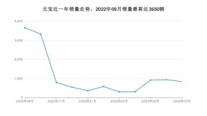 2023年7月,元宝销量为831辆,环比下降11.31%。2022年07月-2023年07月份,元宝销量为12520辆,