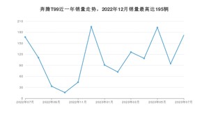 2023年7月,奔腾T99销量为172辆,同比增长2.99%,环比增长82.98%。2022年07月-2023年07月份,奔腾T99销量为1423辆,同比下降71.74%。