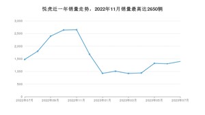 2023年7月,悦虎销量为1396辆,同比下降5.42%,环比增长7.06%。2022年07月-2023年07月份,悦虎销量为20459辆,同比增长210.88%。