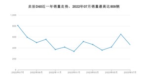 2023年7月,启辰D60销量为456辆,同比下降43.63%,环比下降30.06%。2022年07月-2023年07月份,启辰D60销量为6442辆,同比下降69.21%。