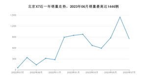 2023年7月,北京X7销量为846辆,同比增长1%,环比下降41.49%。2022年07月-2023年07月份,北京X7销量为8356辆,同比下降41.31%。