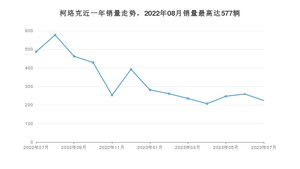 2023年7月,柯珞克销量为224辆,同比下降54%,环比下降13.51%。2022年07月-2023年07月份,柯珞克销量为4314辆,同比下降59.55%。