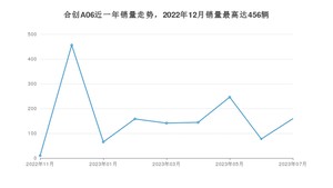 2023年7月,合创A06销量为159辆,环比增长106.49%。2022年07月-2023年07月份,合创A06销量为1456辆,