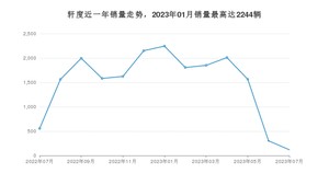 2023年7月,轩度销量为119辆,同比下降78.56%,环比下降60.6%。2022年07月-2023年07月份,轩度销量为19362辆,同比增长231.43%。