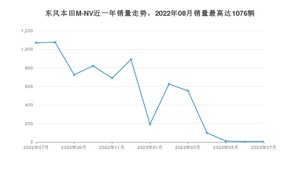2023年7月,东风本田M-NV销量为9辆,同比下降99.16%,环比增长50%。2022年07月-2023年07月份,东风本田M-NV销量为6771辆,同比下降20.88%。