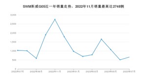 2023年7月,SWM斯威G05销量为658辆,同比下降36.05%,环比增长29.78%。2022年07月-2023年07月份,SWM斯威G05销量为15422辆,同比增长15.07%。