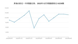 2023年8月,奔驰C级销量为13791辆,同比增长31.61%,环比下降2.87%。2022年08月-2023年08月份,奔驰C级销量为155300辆,同比增长18.22%。