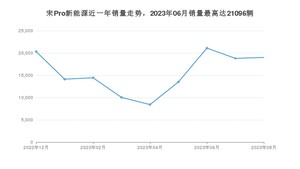 2023年8月,宋Pro新能源销量为19000辆,环比增长1.06%。2022年08月-2023年08月份,宋Pro新能源销量为139736辆,