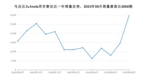 2023年8月,马自达3 Axela昂克赛拉销量为6000辆,同比增长91.63%,环比增长107.54%。2022年08月-2023年08月份,马自达3 Axela昂克赛拉销量为41513辆,同比下降52.02%。