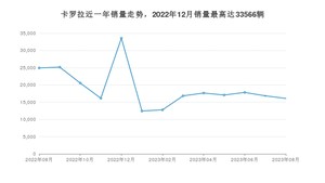 2023年8月,卡罗拉销量为16092辆,同比下降35.46%,环比下降4.46%。2022年08月-2023年08月份,卡罗拉销量为247920辆,同比下降9.71%。