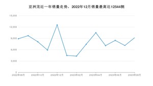 2023年8月,亚洲龙销量为9146辆,同比增长2.84%,环比增长29.03%。2022年08月-2023年08月份,亚洲龙销量为103517辆,同比下降21.95%。