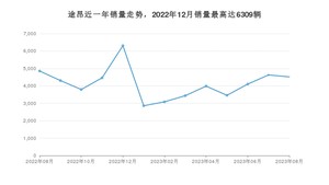 2023年8月,途昂销量为4518辆,同比下降6.9%,环比下降2.38%。2022年08月-2023年08月份,途昂销量为53799辆,同比下降11.1%。