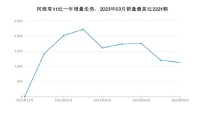 2023年8月,阿维塔11销量为1130辆,环比下降5.83%。2022年08月-2023年08月份,阿维塔11销量为13094辆,