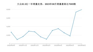2023年8月,大众ID.3销量为7985辆,同比增长196.51%,环比增长8.23%。2022年08月-2023年08月份,大众ID.3销量为40072辆,同比增长83.6%。