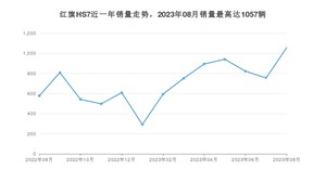 2023年8月,红旗HS7销量为1057辆,同比增长82.87%,环比增长40%。2022年08月-2023年08月份,红旗HS7销量为9142辆,同比下降29.34%。