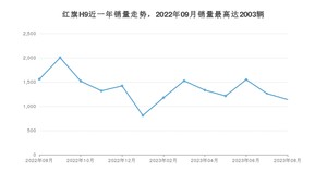 2023年8月,红旗H9销量为1137辆,同比下降26.93%,环比下降9.9%。2022年08月-2023年08月份,红旗H9销量为17806辆,同比下降48.28%。