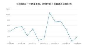 2023年8月,标致508销量为196辆,同比下降51.12%,环比增长752.17%。2022年08月-2023年08月份,标致508销量为5621辆,同比下降39.51%。