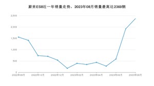 2023年8月,蔚来ES8销量为2369辆,同比增长52.64%,环比增长23.58%。2022年08月-2023年08月份,蔚来ES8销量为11450辆,同比下降43.84%。