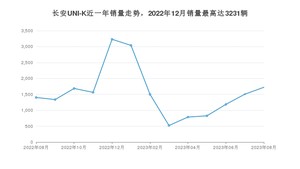 2023年8月,长安UNI-K销量为1723辆,同比增长22.9%,环比增长14.41%。2022年08月-2023年08月份,长安UNI-K销量为20310辆,同比下降41.29%。