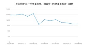 2023年8月,丰田C-HR销量为996辆,同比下降32.84%,环比增长0.5%。2022年08月-2023年08月份,丰田C-HR销量为16116辆,同比下降45.58%。