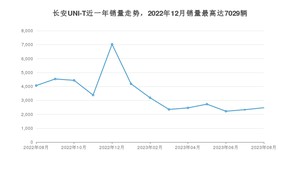 2023年8月,长安UNI-T销量为2471辆,同比下降39.14%,环比增长6.14%。2022年08月-2023年08月份,长安UNI-T销量为45363辆,同比下降31.59%。