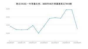 2023年8月,捷达VA3销量为2976辆,同比下降18.82%,环比下降61.92%。2022年08月-2023年08月份,捷达VA3销量为57617辆,同比增长1.47%。