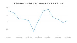 2023年8月,荣威iMAX8销量为436辆,同比下降38.24%,环比增长13.84%。2022年08月-2023年08月份,荣威iMAX8销量为6623辆,同比下降59.1%。