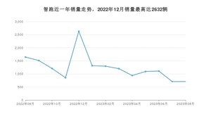 2023年8月,智跑销量为709辆,同比下降56.87%,环比增长0.28%。2022年08月-2023年08月份,智跑销量为16220辆,同比下降42.55%。