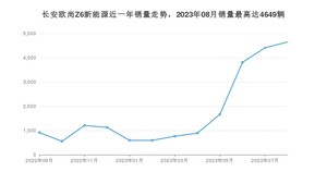 2023年8月,长安欧尚Z6新能源销量为4649辆,环比增长5.42%。2022年08月-2023年08月份,长安欧尚Z6新能源销量为21170辆,