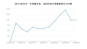 2023年8月,ZR-V 致在销量为1193辆,同比增长3%,环比增长2.49%。2022年08月-2023年08月份,ZR-V 致在销量为11901辆,同比增长33%。