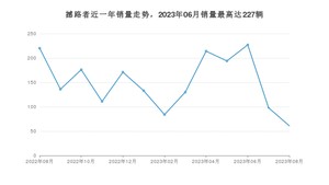 2023年8月,撼路者销量为61辆,同比下降72.27%,环比下降37.76%。2022年08月-2023年08月份,撼路者销量为1955辆,同比增长10.95%。