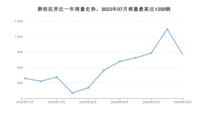 2023年8月,狮铂拓界销量为848辆,环比下降37.19%。2022年08月-2023年08月份,狮铂拓界销量为6585辆,