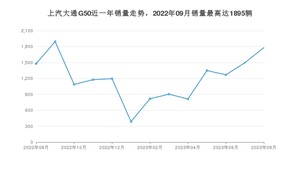 2023年8月,上汽大通G50销量为1781辆,同比增长20.34%,环比增长18.97%。2022年08月-2023年08月份,上汽大通G50销量为15654辆,同比下降28.72%。