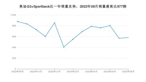 2023年8月,奥迪Q3 Sportback销量为582辆,同比下降33.64%,环比增长2.83%。2022年08月-2023年08月份,奥迪Q3 Sportback销量为9045辆,同比下降30.97%。